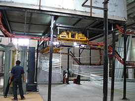Nayrit Technology Pvt. Ltd. offers Conveyorized Powder Coating lines consists of overhead Chain Conveyor passes through booth, coating is done with Manual / Auto Spray Guns and then enters thru the oven for baking process, the oven can be straight tunnel type or with loops inside it. Conveyor speed is worked out based on production rate required.
